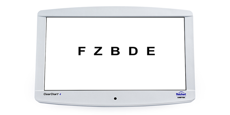 La nueva familia de sistemas ClearChart® Agudeza digital de Reichert® es todo en uno, elegante, fácil de usar y diseñado exclusivamente para satisfacer todas las sus necesidades de pruebas de agudeza con una amplia selección de optotipos y otras tablas de prueba especiales. El sistema ClearChart 4 Agudeza digital estándar presenta una nueva pantalla retroiluminada LED de alta resolución de 24 pulgadas, es liviano, de funcionamiento fresco y duradero. La interfaz de usuario intuitiva, ya sea controlada desde el control remoto infrarrojo fácil de usar o mediante el sistema de refracción digital Phoroptor® VRx, proporciona la mejor experiencia de usuario de cualquier gráfico de agudeza digital.