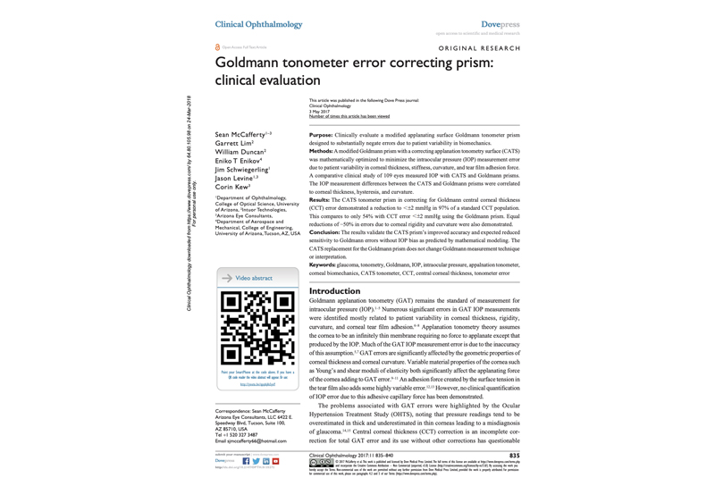 2 - McCafferty S, Tetrault K, McColgin A, Chue W, Levine J, Muller M. Précision de la mesure de la pression intraoculaire du prisme de Goldmann modifié et corrélation avec les mesures biomécaniques cornéennes : essai clinique randomisé multicentrique. Br J Ophtalmol. Déc 2019 ; 103(12) : 1840-1844. doi : 10.1136/bjophthalmol-2018-313470.