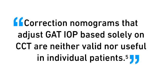 眼压(IOP)是青光眼唯一可改变的危险因素。因此,准确测量眼压对于正确诊断和管理至关重要。然而,人们普遍认为Goldmann 和其他眼压计受角膜特性的影响。虽然角膜厚度已被认为是影响 IOP 测量准确性的重要因素,但已经表明,尝试通过角膜厚度校正公式调整 IOP 值不会为青光眼决策过程增加任何价值。主要影响眼压测量精度的是生物力学,而不是厚度。